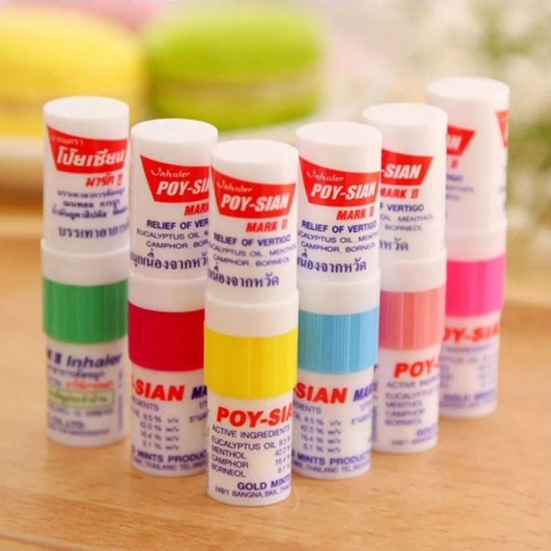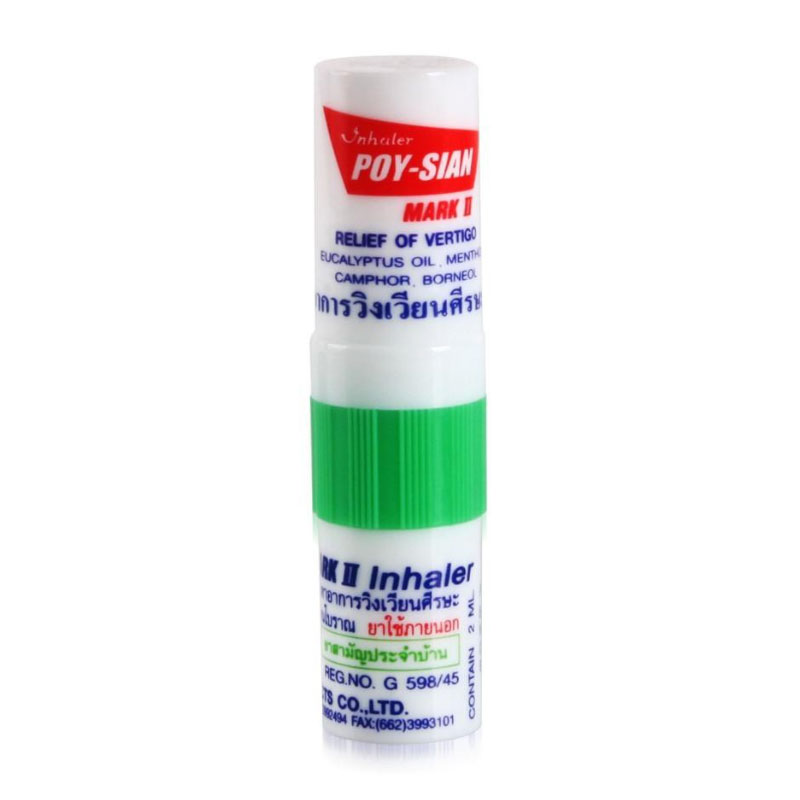 De Poy-Sian Mark II kruideninhalator (of Mark-2) is een populaire Thaise, natuurlijke neusinhalator met een combinatie van essentiële oliën, kruiden en zouten (menthol, kamfer, eucalyptus, borneol) voor snelle verlichting bij verstopte neus, verkoudheid, hooikoorts, duizeligheid en vermoeidheid. Het is een compacte 2-in-1 stick met een kant om te inhaleren voor de luchtwegen en een andere kant met olie voor lokale toepassing op de huid (bijvoorbeeld bij insectenbeten).